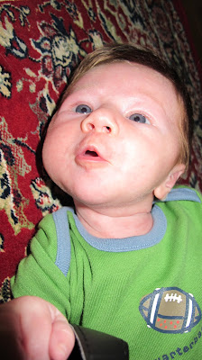 Wow time flies! Avery will be 8 weeks old in a few days. Zac and I are super blessed and we have so much fun with him. Zac calls him "Little Man" and I find myself calling him an assortment of things mainly "Bubba" or "Bubs". He already needs his first hair cut but I just can't bring myself to do it. It is already hanging well over his ears. He also JUST lost his umbilical cord (with a little help from mommy which I hate to admit). I was starting to think that he was going to be 18 and still have it attached. If anyone has ever heard the Veggie Tales song "I ain't got a belly button" that was going to be Avery's theme song. I also thought that we were well on our way to sleeping through the night after two nights of only getting up one time to nurse, but last night dashed all my hopes after he woke up three times. He also LOVES when his daddy gets home from work. Zac can make him smile like no one else (Avery must think he looks funny...JK!). Yesterday when I put Avery down for a nap he was belly laughing in his sleep...it was super adorable :)